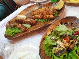 설명: 국제 요리와 알바니아 요리를 혼합한 고급 식사.